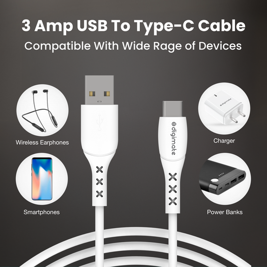 Digimate USB To C Cable With 3 AMP Output For Charging Support Upto 65 Watt & Data Transfer 1 Meter (DG-TCC-1002, White)