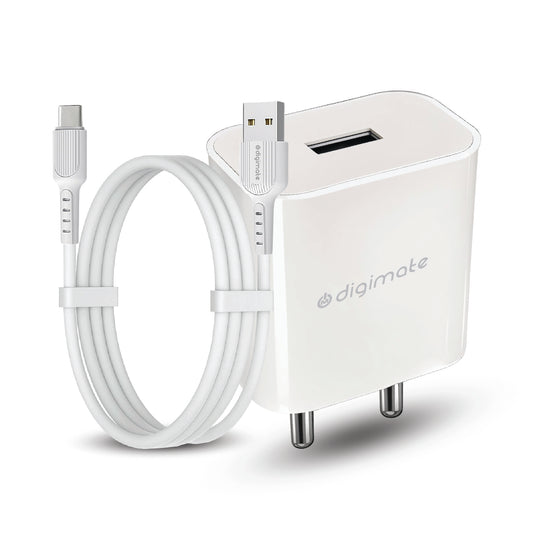 Digimate 15W Single USB Port Charger With Type-C Cable, Fast Charging Universal Compatibility (DG-ADP-1007)