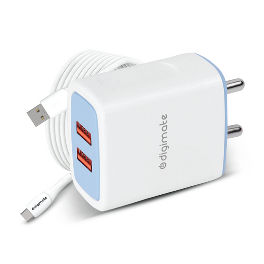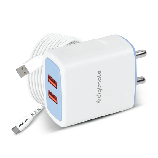Digimate 2.4A Dual Port 15W Quick Charge With Micro USB Cable (White-DG-ADP-1002)