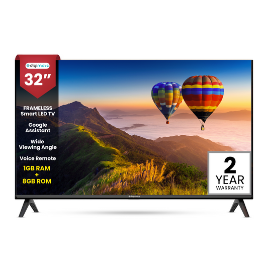 Digimate 32-Inch Frameless HD Smart LED TV with Google Assistant Voice Remote & Dolby Audio (DG-LED-3202) 2 Year Warranty