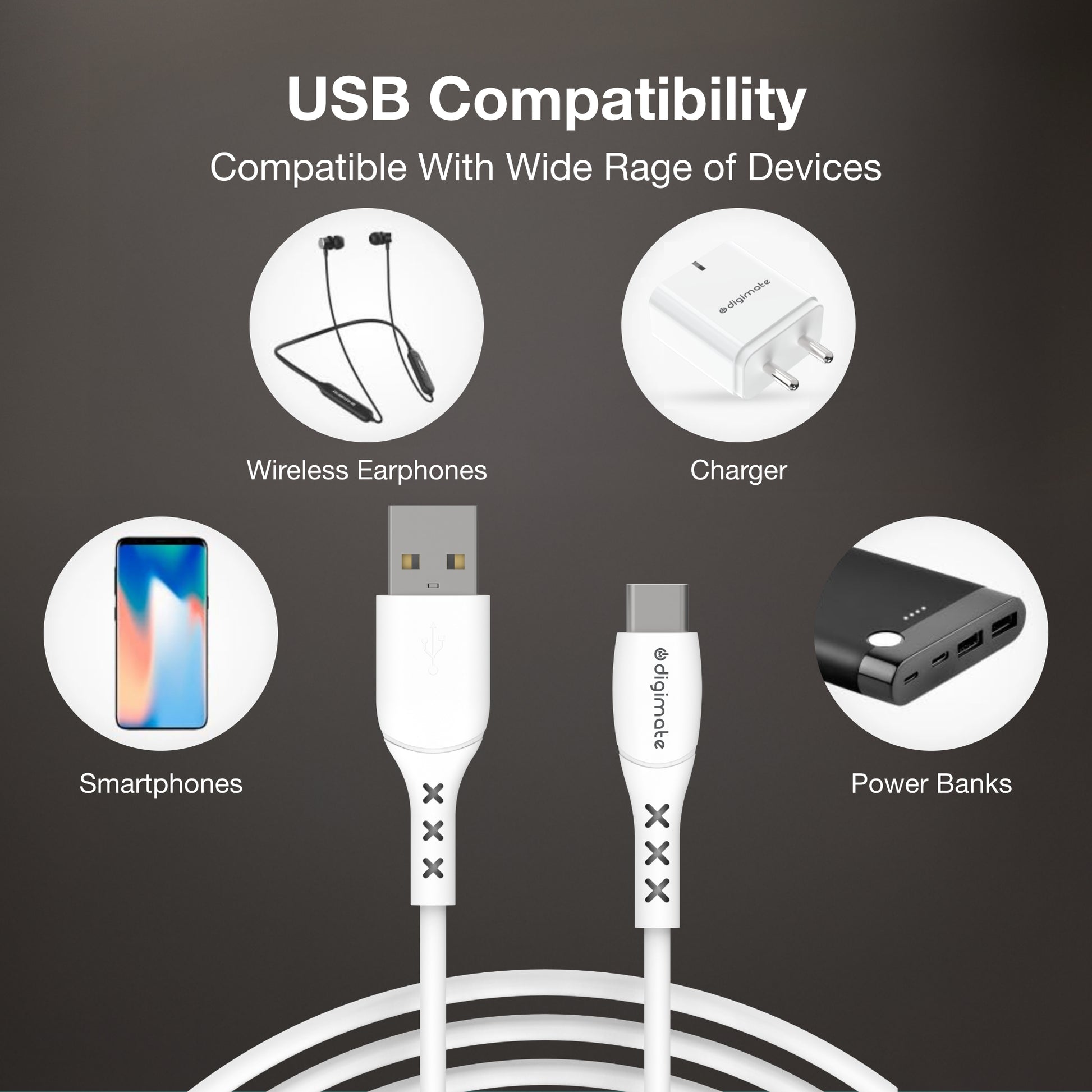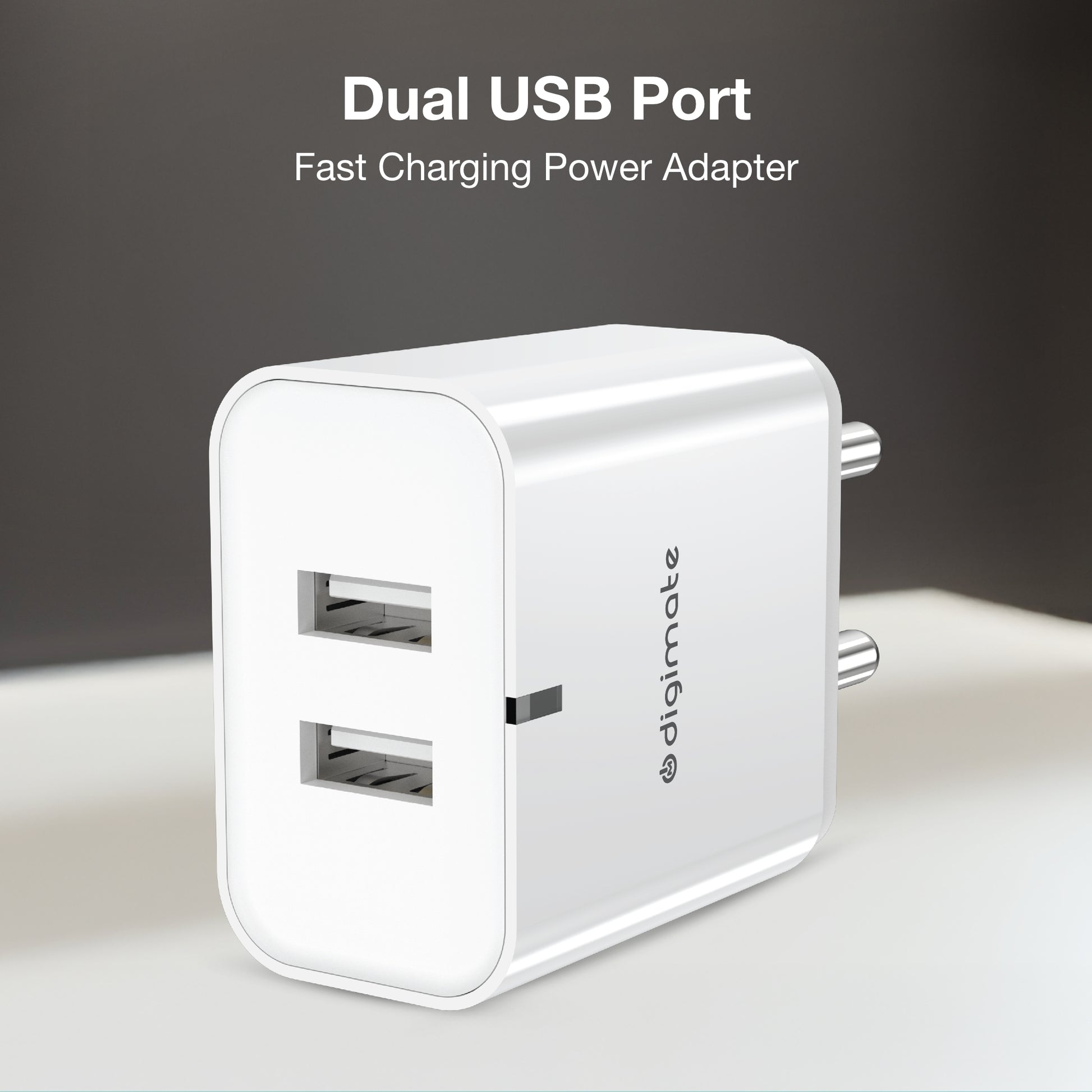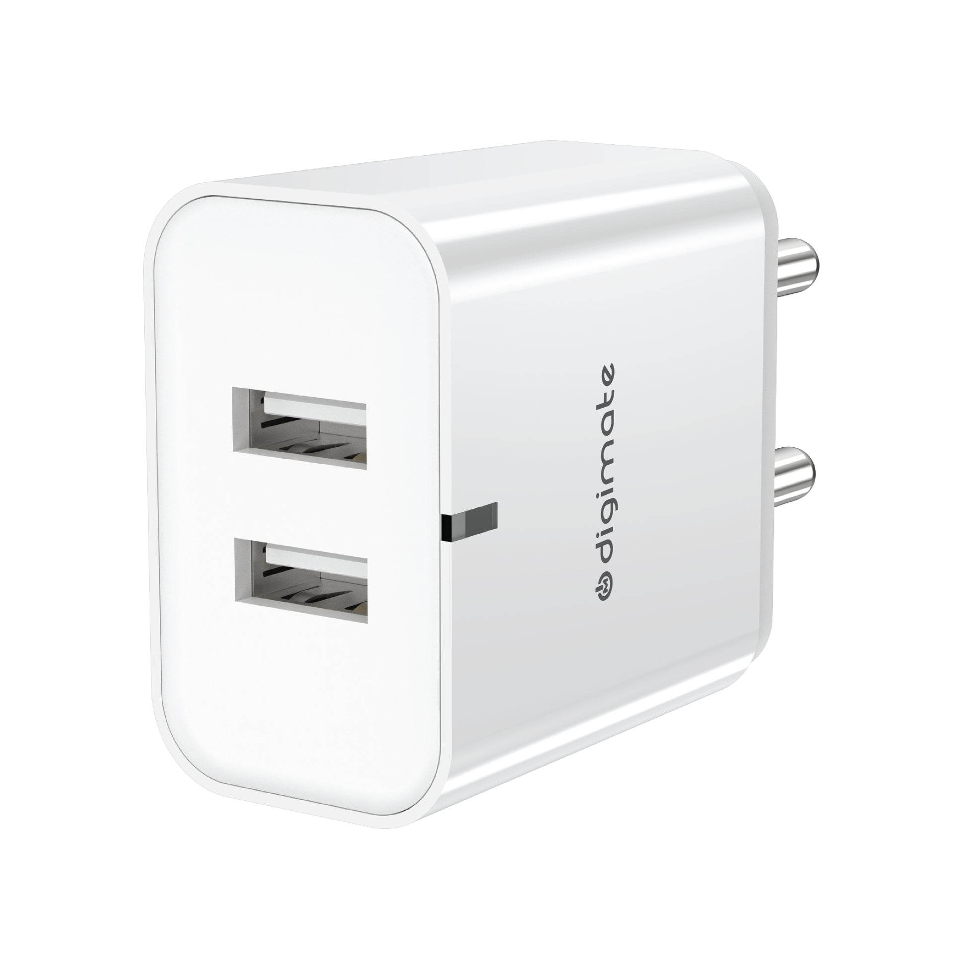 Digimate 15w Dual USB Port USB Wall Charger Adapter with micro and type C cable both - White