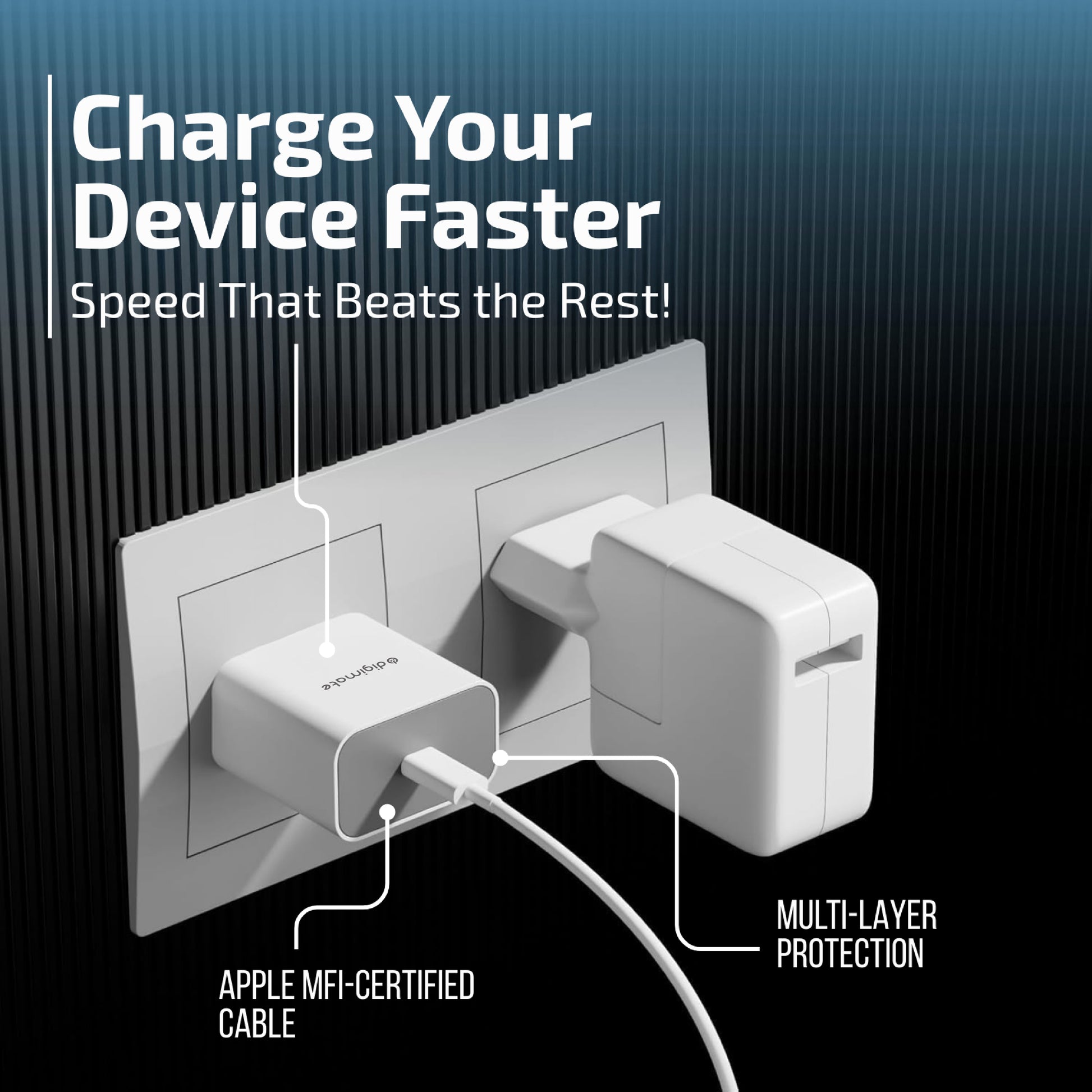 Digimate iPhone 20W PD Charger with Type-C to Type-C Cable Compatible for iPhone 14/15/16/17/Pro/Max (DG-ADP-1004, White)