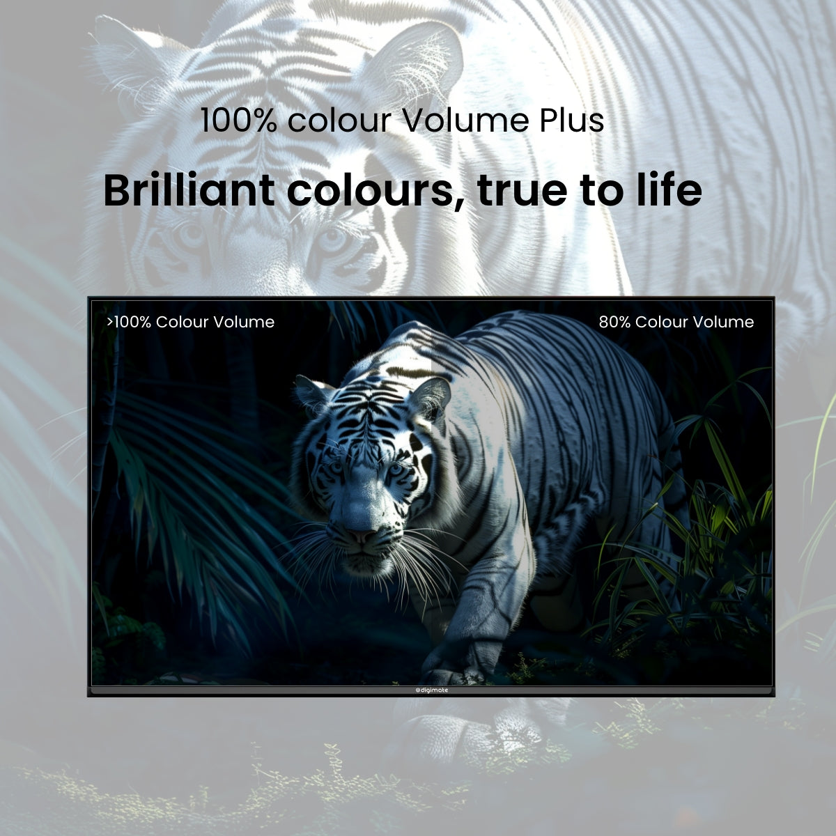 Connectivity is hassle-free with Bluetooth, 2 USB ports, 3 HDMI port, and 1 LAN (Ethernet) port, ensuring easy access to your devices and media files. A wall mount is included in the box, giving you flexible installation options for your space.