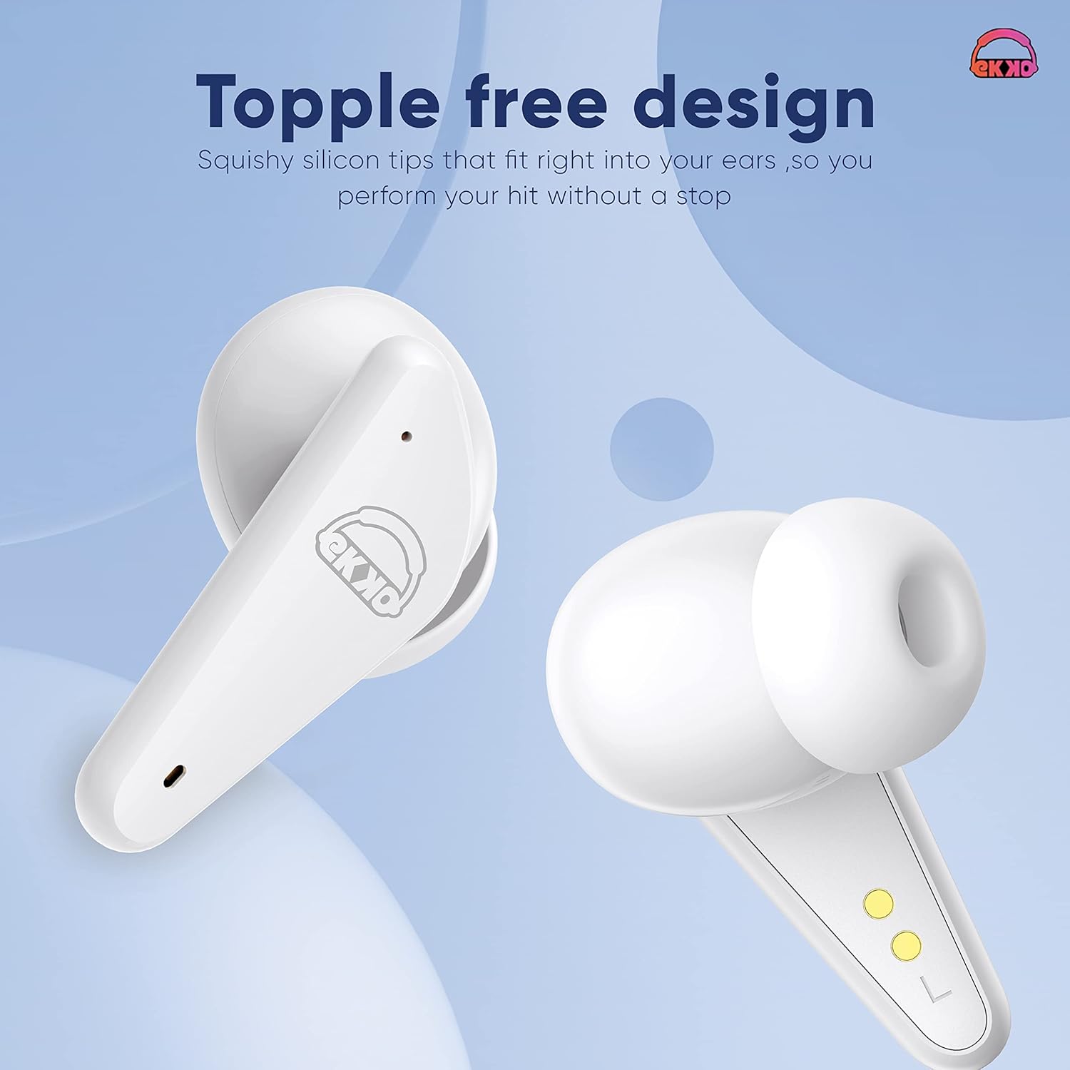 EKKO Earbeats T09: Mic, ENC Call Noise Cancellation, 40H Playtime, 10MM Driver, Twin Connect, Maxx Bass, Water Resistance (White)