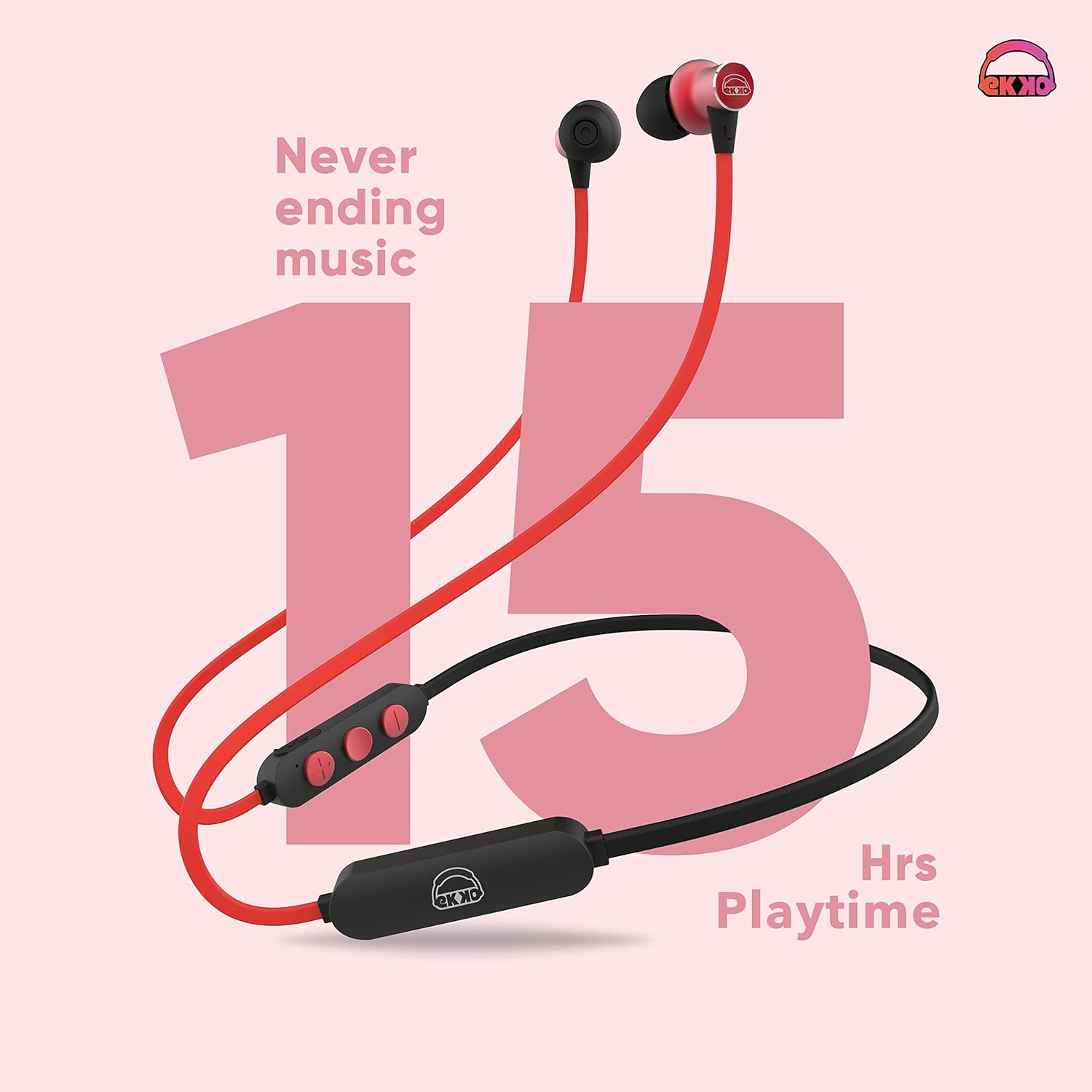 EKKO Unplug N02 Neckband with Super Sound Heavy Bass, Playback time Upto 15 Hours, Max BASS, TwinConnect, Siri & Google Assistant Activate (Red)