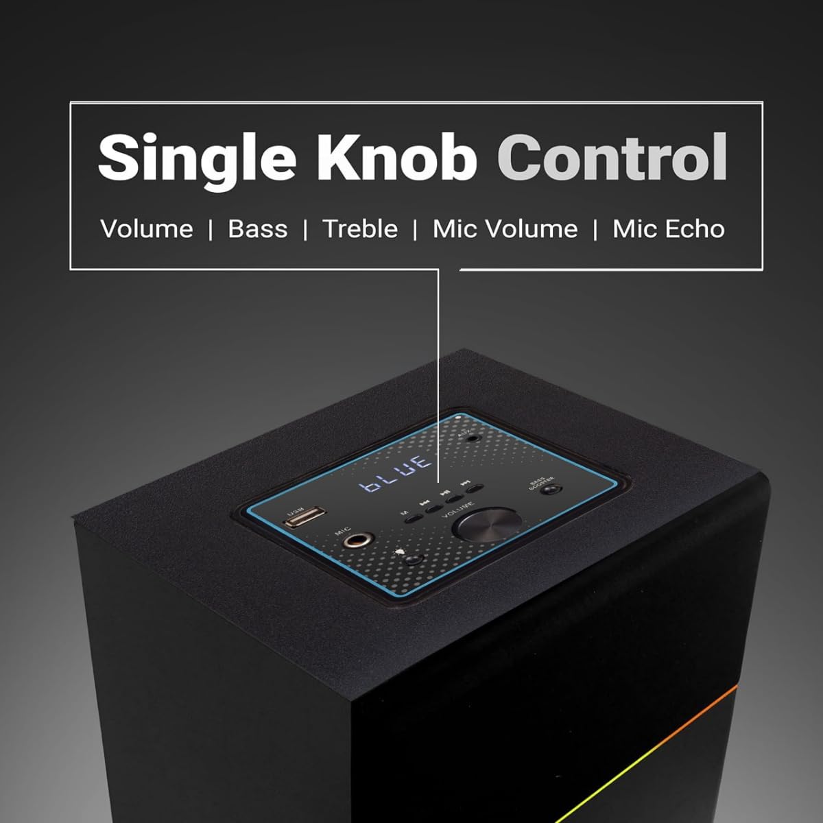 Digimate DG-BB01 Boombox 80 Watt Powerful Tower Speaker 6.5" Woofer High Power Bass, 4.0" Speaker, AUX, USB, LED Lights+Display, BT+ Wired Karaoke Mic Support, Full Remote Control (Platinum Black)